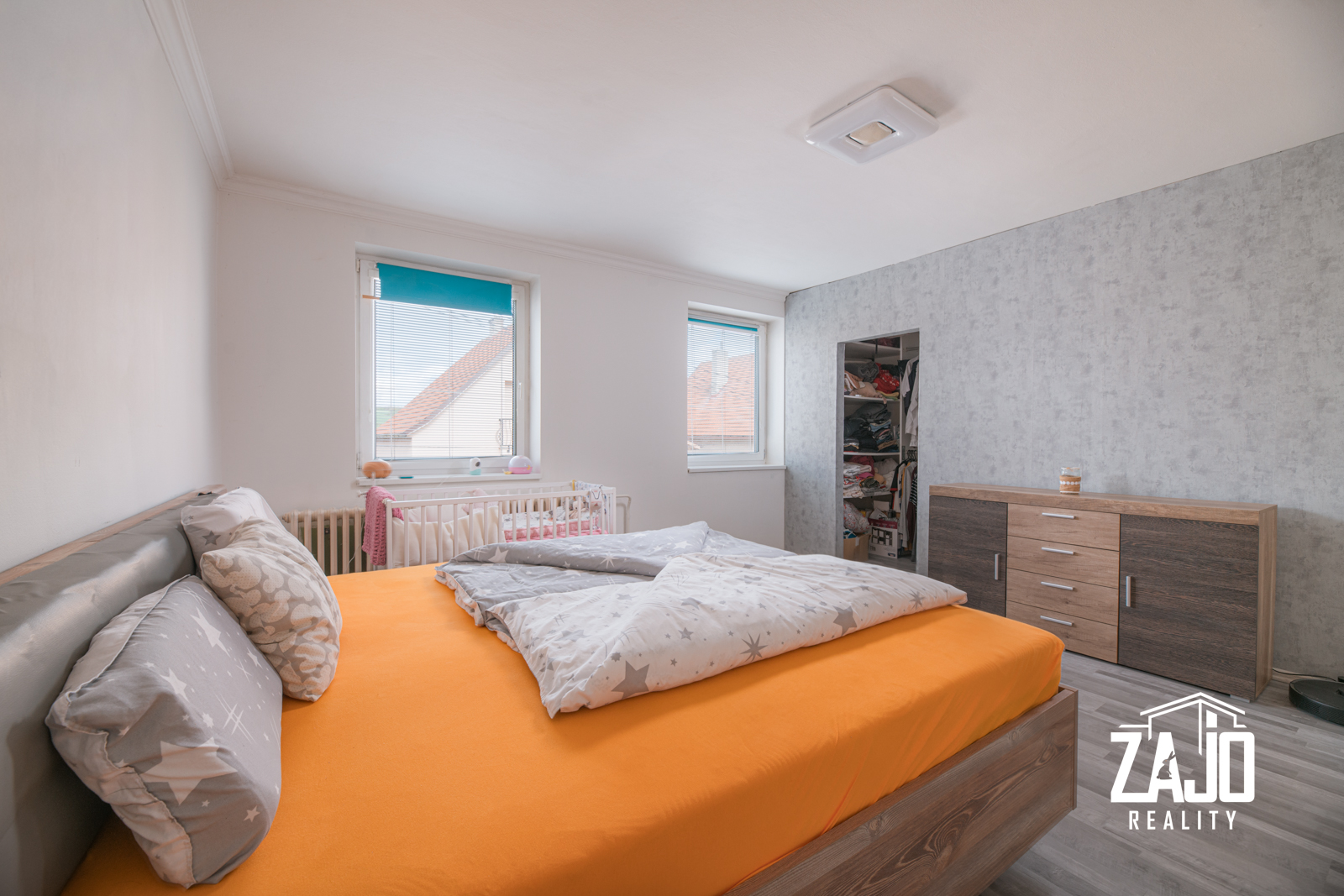 - NP: spálňa so šatníkom, 2 samostatné izby a kúpeľňa.