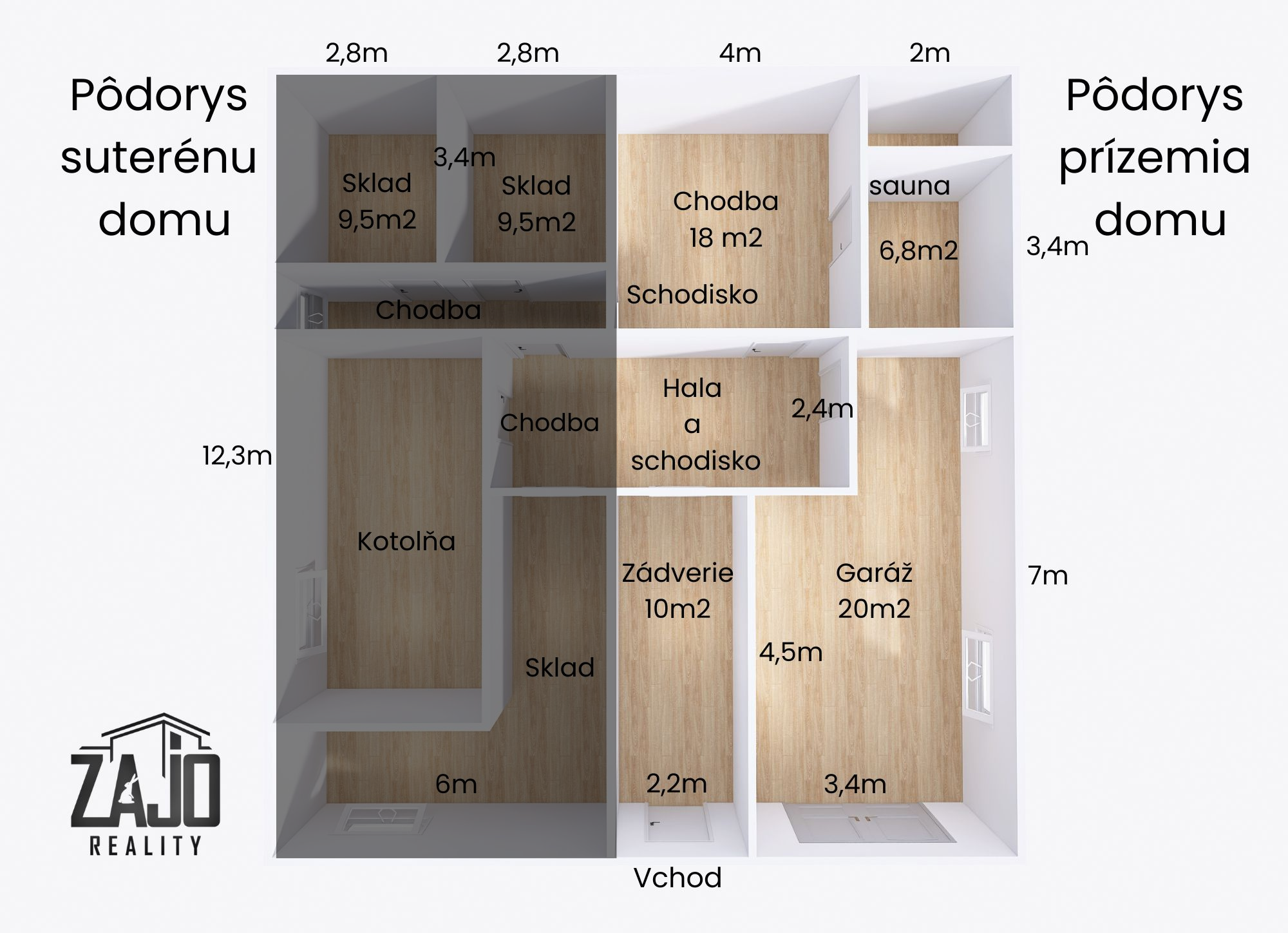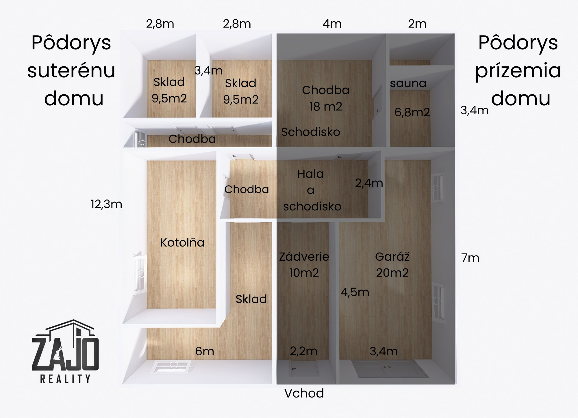 - Suterén: kotolňa, chodba a 3x samostatný sklad.